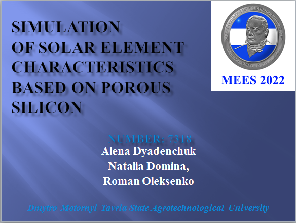 У роботі секції «Power Electronics» взяли участь викладачі кафедри вищої математики і фізики – к.т.н., доцент Наталя Дьоміна, к.т.н., старший викладач Альона Дяденчук, а також професор кафедри менеджменту та публічного адміністрування Роман Олексенко.. Науковцями було представлено доповідь «Simulation of solar element characteristics based on porous silicon». У доповіді автори зазначили, що однією з головних проблем фотоелектричних систем є підвищення ефективності сонячних елементів. Метою запропонованої роботи стало моделювання характеристик сонячного елемента на основі пористого кремнію та оптимізація конструкції цих фотоелектричних перетворювачів.