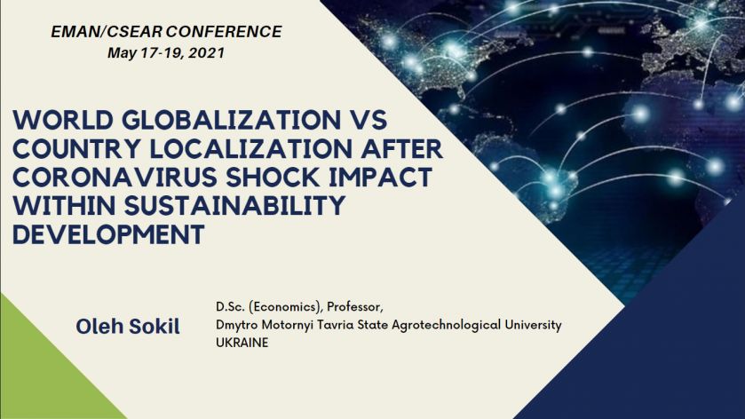 Завідувач кафедри обліку і оподаткування, д.е.н., професор Олег Сокіл гідно представив свої здобутки на тему «World globalization vs country localization after coronavirus shock impact within sustainability development». Робота Олега Сокола була одна із тридцяти, що були відібрані з поміж більше ніж 150 робіт надісланих до оргкомітету конференції з різних країн світу.