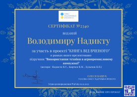 Науковці кафедри експлуатації та технічного сервісу машин механіко-технологічного факультету Таврійського державного агротехнологічного університету імені Дмитра Моторного д.т.н., професор Володимир Надикто, професорВолодимир Кюрчев та д.т.н., професор Володимир Кувачов у 2023 році брали участь у науково-популярному проєкті «Книга від вченого», який ініційовано Офісом підтримки вченого.