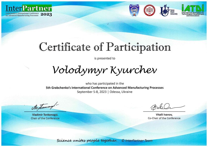 Викладачі Таврійського державного агротехнологічного університету імені Дмитра Моторного взяли участь у V міжнародній конференції Advanced Manufacturing Processes (InterPartner-2023), яка відбулася 05 – 08 вересня 2023 р.