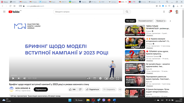 20 січня 2023 року у Міністерстві освіти та науки України відбувся брифінг, на якому було представлено модель вступної кампанії-2023.