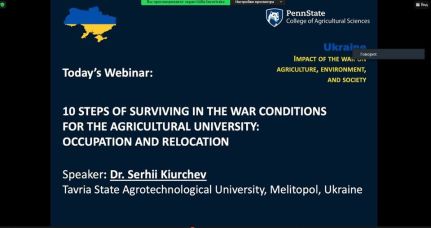6 квітня ректор Таврійського державного агротехнологічного університету імені Дмитра Моторного, професор Сергій Кюрчев взяв участь в якості спікера у вебінарі «10 STEPS OF SURVIVING IN THE WAR CONDITIONS FOR THE AGRICULTURAL UNIVERSITY» /»10 кроків виживання в умовах війни для аграрного університету», організованим Penn State College of Agricultural Sciences, Пенсильванія.