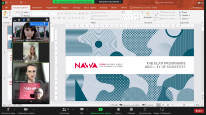 Також у липні Відділ міжнародних зв’язків ТДАТУ взяв участь в онлайн-зустрічі із представницею польського національного агентства академічних обмінів (NAWA) пані Магдою Ковальчик. Зустріч присвячена програмі імені Станіслава Улама, яка дає можливість проведення досліджень у Польщі для науковців зі ступенем доктора (PhD) всіх наукових дисциплін зі щомісячною стипендією.