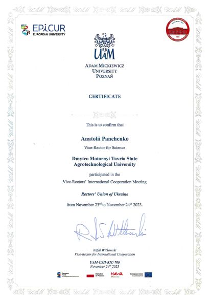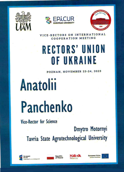Оскільки Європейська інтеграція та розвиток міжнародної співпраці є одним із пріоритетних завдань діяльності вчених Таврійського держаного агротехнологічного університету імені Дмитра Моторного, у заході взяв участь доктор технічних наук, професор, проректор з наукової роботи Анатолій Панченко.