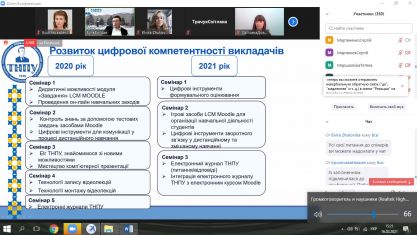 Під час роботи було розглянуто IT-технології, які допомагають викладачам розвивати академічну доброчесність. Представники провідних закладів освіти України поділились досвідом щодо стратегії розвитку он-лайн освіти в ЗВО, сучасні засоби комунікації зі здобувачами вищої освіти та про історії успіху он-лайн навчання під час пандемії.