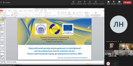 - Європейським досвідом впровадження та сертифікації системи управління якістю освітніх послуг. Ризик-орієнтований підхід до управління якістю тощо.