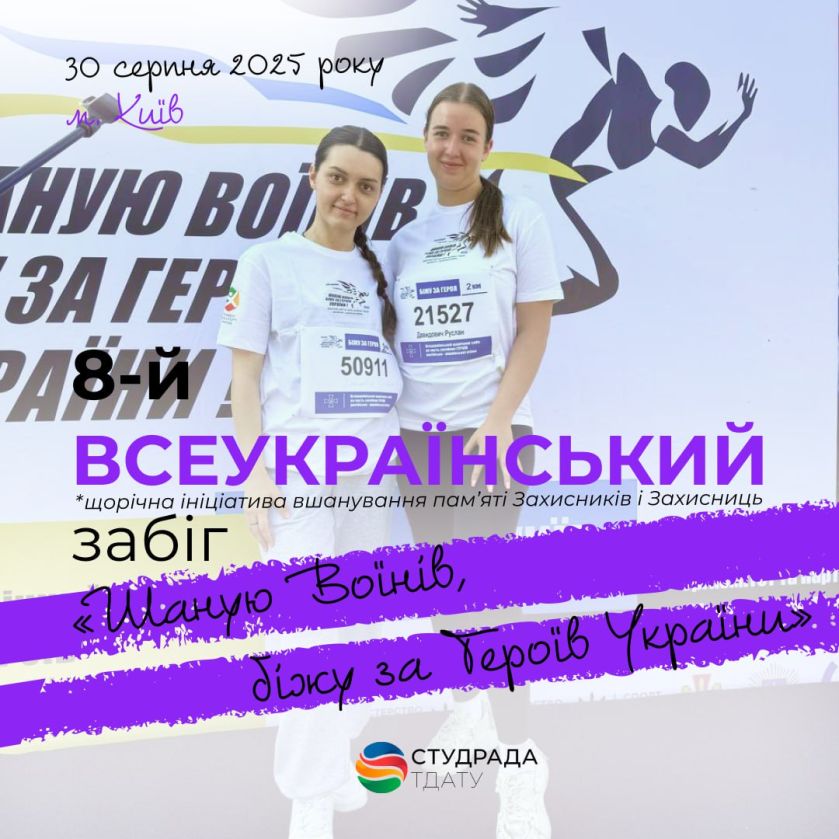 30 серпня відбувся 8-й Всеукраїнський забіг «Шаную Воїнів, біжу за Героїв України» — подія, що об’єднала людей з різних куточків України та світу задля вшанування пам’яті Захисників і Захисниць, які віддали життя за свободу нашої держави.