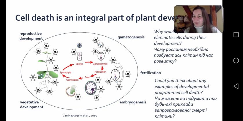 Днями відбувалась відкрита лекція від докторантки у групі Моріца Новака, VIB Центру біології рослинних систем, Університет Гента, Бельгія, доктора філософії з біохімії, Університет Палацького, Оломоуц, Чеської Республіки Терези Ваврдової на тему «Запрограмована загибель клітини рослин».