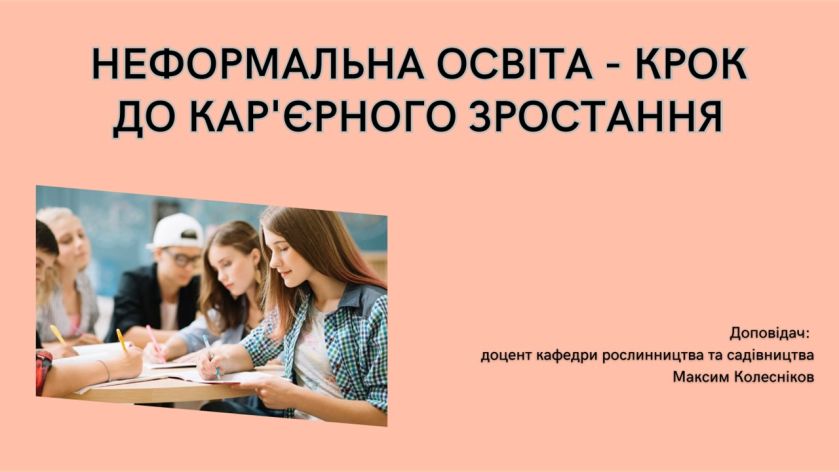 Днями, в рамках роботи Вищої школи педмайстерності ТДАТУ відбувся онлайн-семінар для здобувачів вищої освіти на тему “Неформальна освіта – крок до кар’єрного зростання”. Спікер – доцент кафедри рослинництва та садівництва імені професора В.В. Калитки Максим Колесніков..