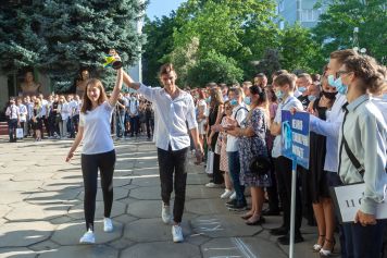 На завершення урочистостей Володимир Кюрчев, як знак посвяти в першокурсники, вручив студентам символічні атрибути: ключ від Країни Знань і Студентський квиток. Перший дзвоник, що пролунав на святі, ознаменував початок нового навчального року.