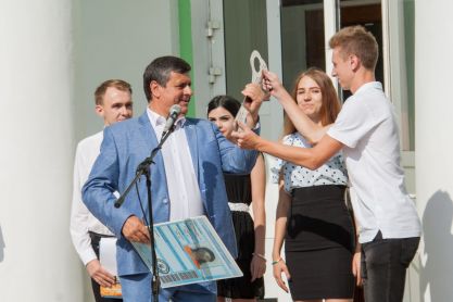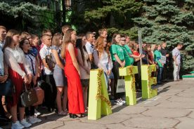 На завершення урочистостей Володимир Кюрчев, як знак посвяти в першокурсники, вручив студентам символічні атрибути: ключ від Країни Знань і Студентський квиток. Перший дзвінок, що пролунав на святі, ознаменував початок нового навчального року. В небо злетіли десятки повітряних куль!