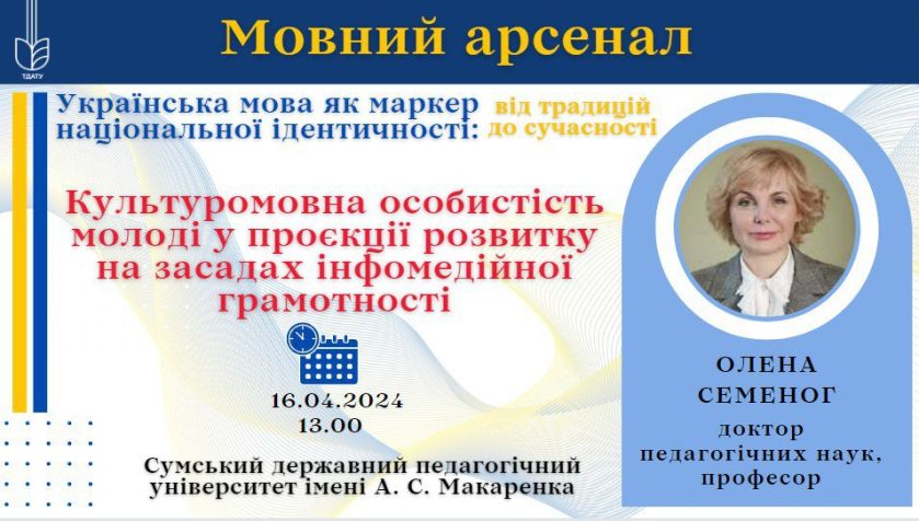 Таврійський державний агротехнологічний університет імені Дмитра Моторного запрошує. викладачів, здобувачів освіти та всіх охочих на урочисте відкриття мовного арсеналу «УКРАЇНСЬКА МОВА ЯК МАРКЕР НАЦІОНАЛЬНОЇ ІДЕНТИЧНОСТІ: від традицій до сучасності»