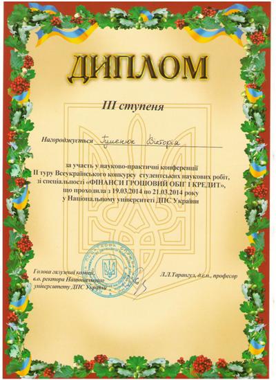 Успішна участь студентки магістратури ТДАТУ у Всеукраїнському конкурсі студентських наукових робіт зі спеціальності «Фінанси, грошовий обіг і кредит»