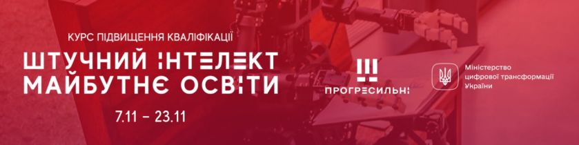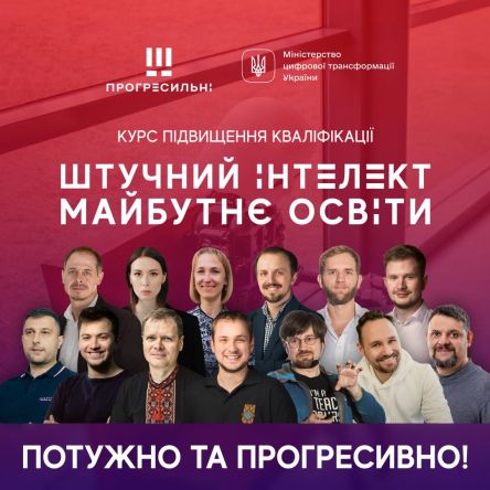 З 7 по 23 листопада 2023 року відбулась серія онлайн-заходів з підвищення кваліфікації для працівників вищої, професійно-технічної та фахової передвищої освіти «Штучний інтелект та майбутнє освіти» від Експертного комітету з питань розвитку штучного інтелекту при Міністерстві цифрової трансформації України та ГО «Прогресильні».