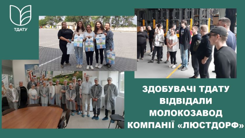 Днями студенти ТДАТУ відвідали з екскурсією молокозавод компанії «Люстдорф». Майбутні фахівці з індустрії здорового харчування ознайомилися з сучасними очисними спорудами молокозаводу, роботою автоматизованого сучасного логістичного центру, та виробничих приміщень.