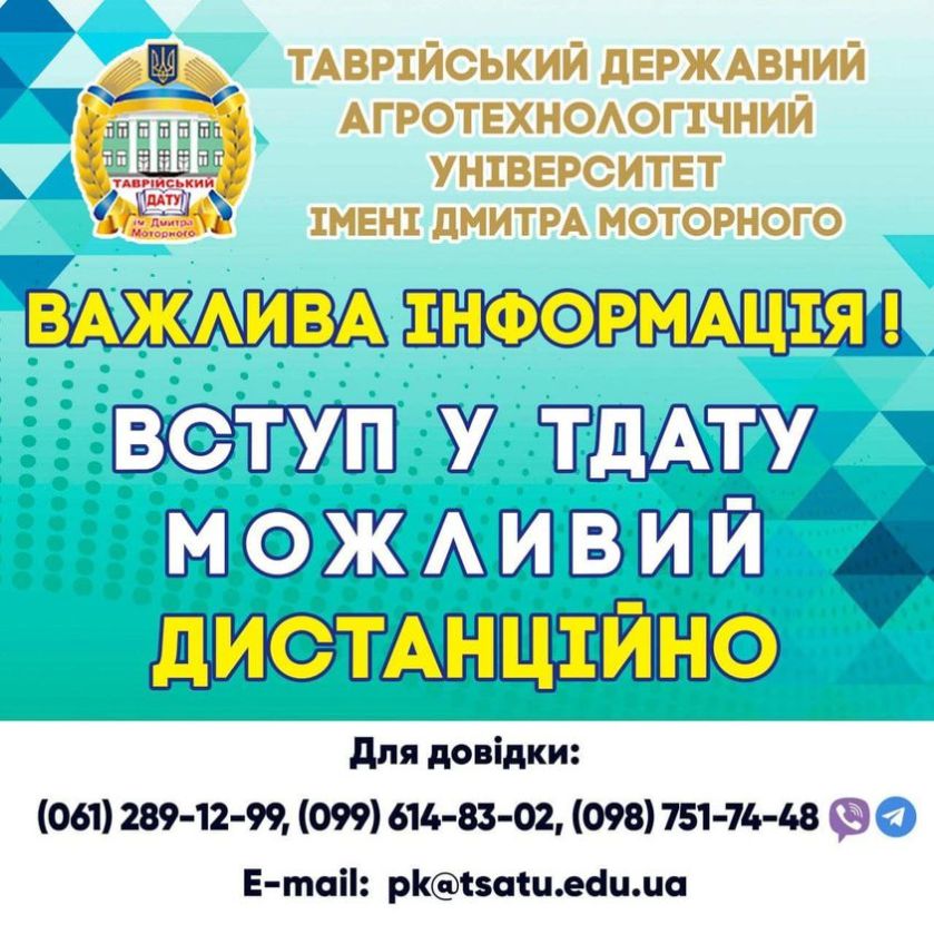Важлива інформація! Вступ до ТДАТУ можливий дистанційно