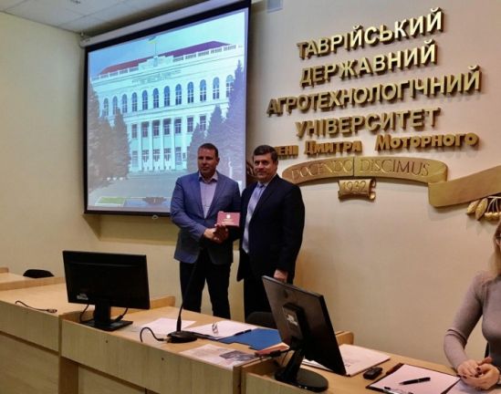 25 лютого відбулось чергове засідання вченої ради університету. Розпочалось засідання з вручення атестата «Почесний професор ТДАТУ» тим, хто має важливі досягнення у роботі на благо рідного краю: народному депутату України Сергію Мінько; голові Мелітопольської районної ради Олександру Мордику; голові Аграрного союзу Запорізької області, директору «Агрофірма Ольвія» Анатолію Тиховоду.