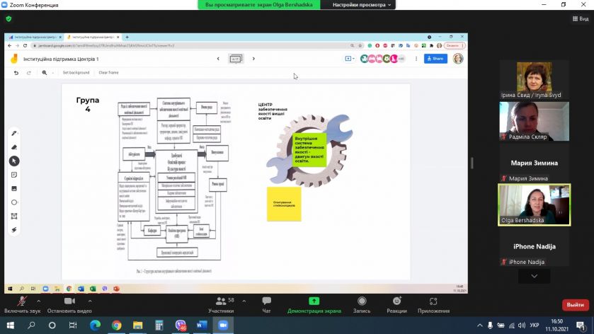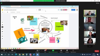 Пані Ольга у доповіді наголосила, що як і будь-якому іншому підрозділу закладу вищої освіти, Центру забезпечення якості освіти для ефективної роботи вкрай потрібна інституційна підтримка. В ході вебінару також говорилось про аспекти діяльності Центрів, які важливо врахувати при плануванні та бюджетуванні діяльності закладу.