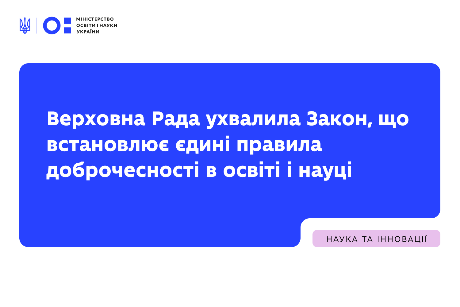 Верховна Рада ухвалила Закон, що встановлює єдині правила доброчесності в освіті і науці