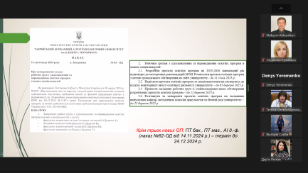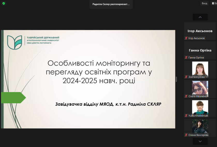 12 грудня 2024 року відбулась планова нарада-семінар «Особливості моніторингу та перегляду освітніх програм у 2024-2025 навч. році» для гарантів освітніх програм Таврійського державного агротехнологічного університету імені Дмитра Моторного.
