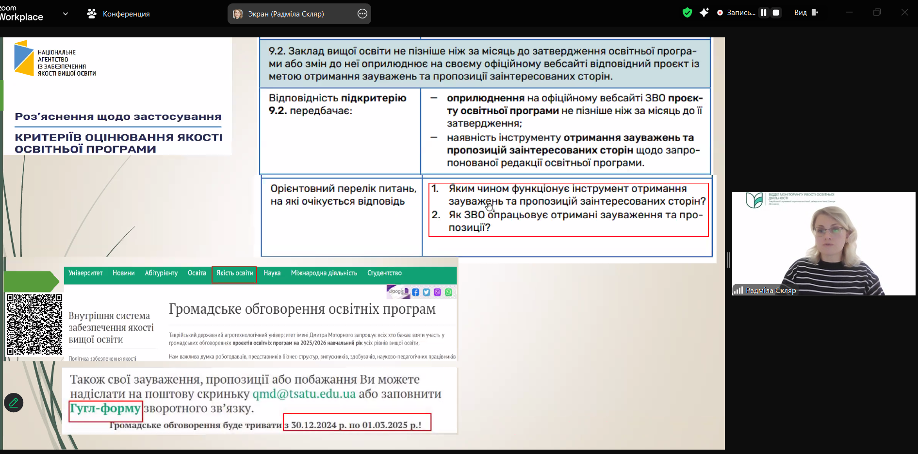 Відділ моніторингу якості освітньої діяльності Університету провів нараду-семінар «Зміни до документального підтвердження моніторингу та перегляду освітніх програм у 2025 році»