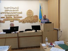 Зі вступним словом до присутніх звернулась головуюча на заході проректорка з наукової роботи ТДАТУ докторка сільськогосподарських наук, професорка Оксана Єременко. Вона передала присутнім привітання ректора університету доктора технічних наук, професора, члена-кореспондента НААН України Володимира Кюрчева, представила учасників заходу, оголосила порядок денний та регламент роботи заходу.