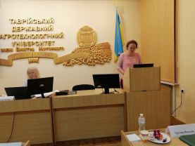 Зі вступним словом до присутніх звернулась головуюча на заході проректорка з наукової роботи ТДАТУ докторка сільськогосподарських наук, професорка Оксана Єременко. Вона передала присутнім привітання ректора університету доктора технічних наук, професора, члена-кореспондента НААН України Володимира Кюрчева, представила учасників заходу, оголосила порядок денний та регламент роботи заходу.