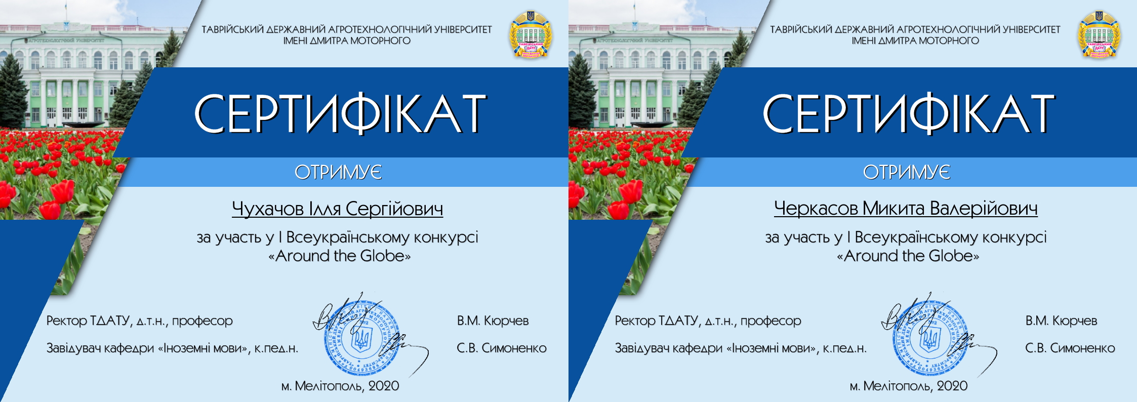 Вітаємо переможців І Всеукраїнського конкурсу «AROUND THE GLOBE»