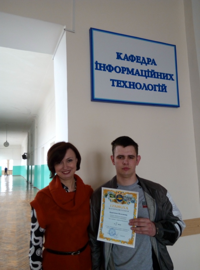 За підсумками конкурсу робота Кравченка В.А. зайняла ІІ місце в конкурсі студентських наукових робіт серед вищих навчальних закладів України з інформаційних технологій!