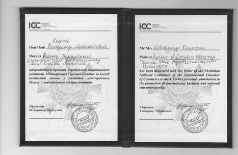 Ректор Таврійського державного агротехнологічного університету імені Дмитра Моторного, доктор технічних наук, професор, член-кореспондент НААН України, Володимир Кюрчев, нещодавно був нагороджений «Орденом ICC UKRAINE». Орден, вручений ректору, являє собою оригінальний і неповторний виріб ювелірного мистецтва, в основу якого покладені геральдичні канони старовинних та сучасних майстрів ювелірної справи.