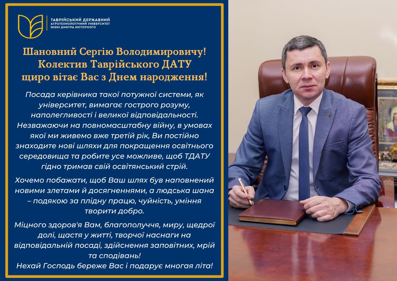 Вітаємо з Днем народження ректора ТДАТУ Сергія Кюрчева