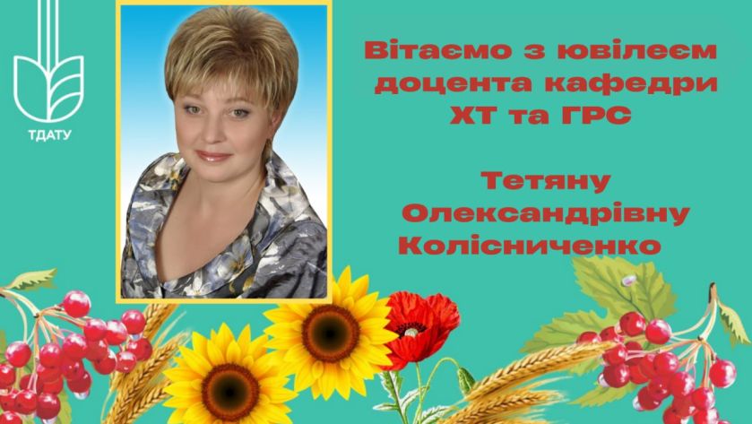 14 липня свій ювілей святкує кандидат технічних наук, доцент кафедри харчових технологій та готельно-ресторанної справи Тетяна Колісниченко.