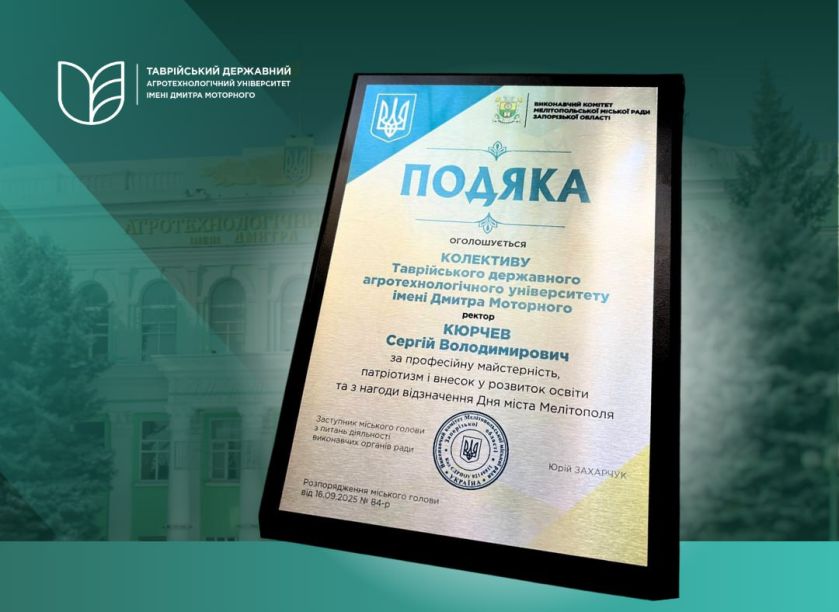 Приємно відзначити, що з нагоди 241-ї річниці Мелітополя наш університет був удостоєний Подяки виконавчого комітету Мелітопольської міської ради. Ця нагорода є результатом спільної праці всього колективу ТДАТУ, який щодня демонструє професіоналізм, патріотизм та відданість своїй справі. Внесок викладачів, студентів і співробітників у розвиток освіти та збереження наукових традицій є вагомим підтвердженням незламності нашої академічної спільноти навіть у найскладніші часи.