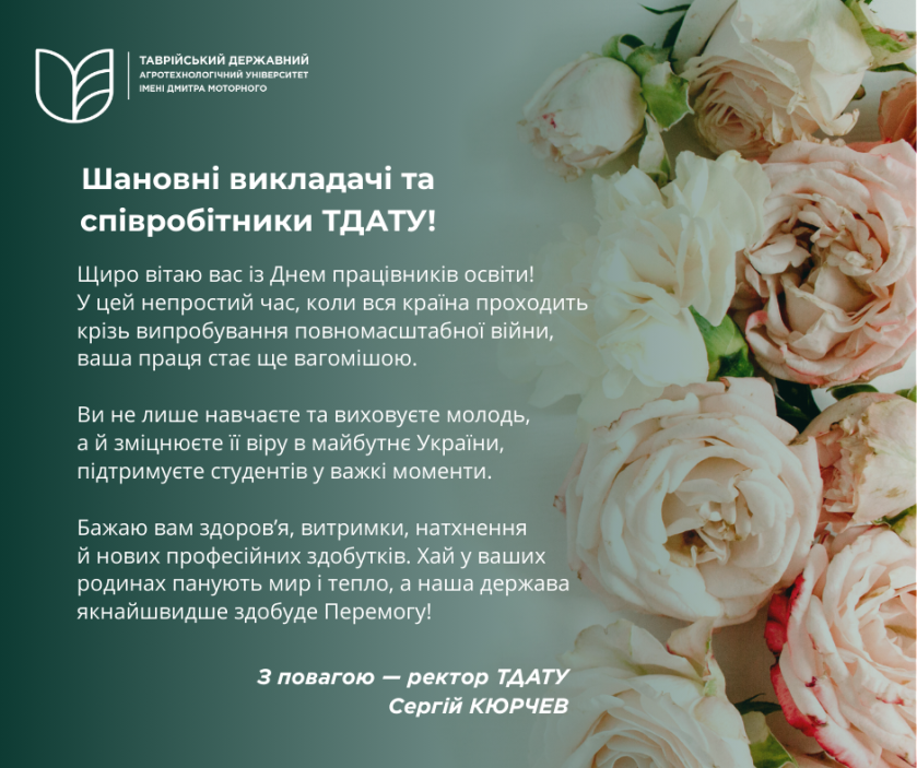 Студентська рада ТДАТУ щиро вітає викладачів ТДАТУ з професійним святом!