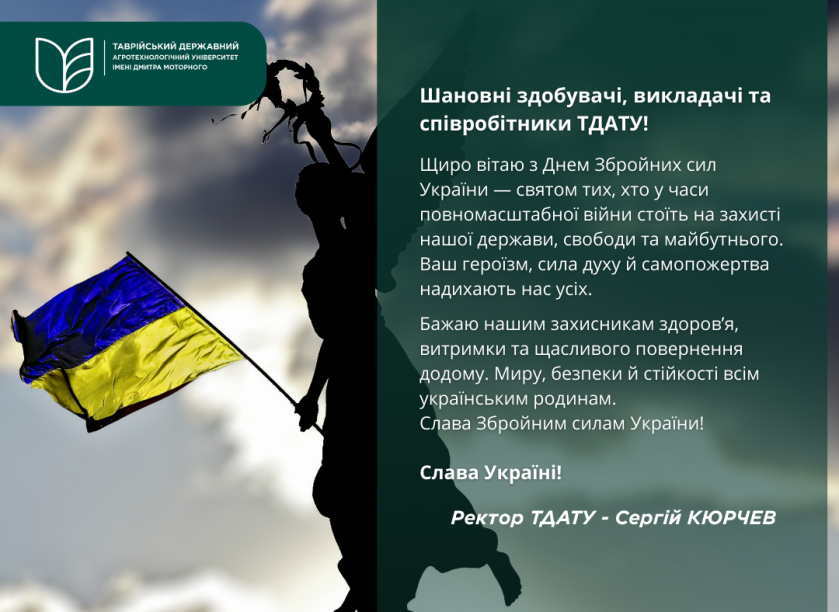 Вітання ректора ТДАТУ з Днем Збройних сил України