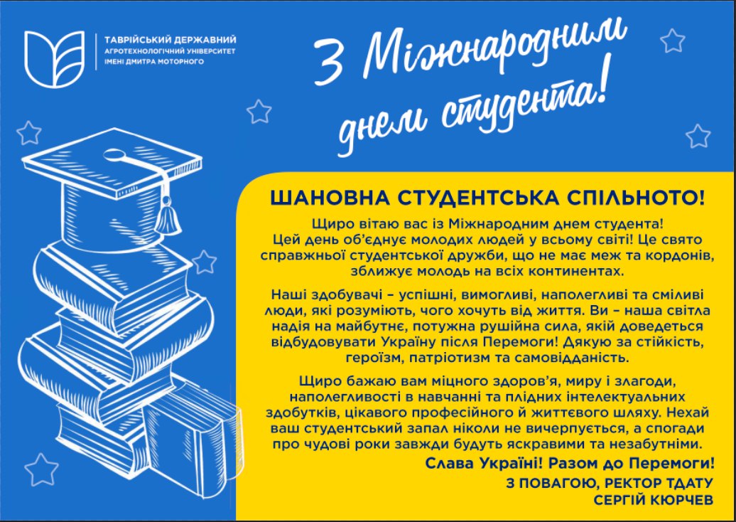 Вітання ректора ТДАТУ з Міжнародним днем студента
