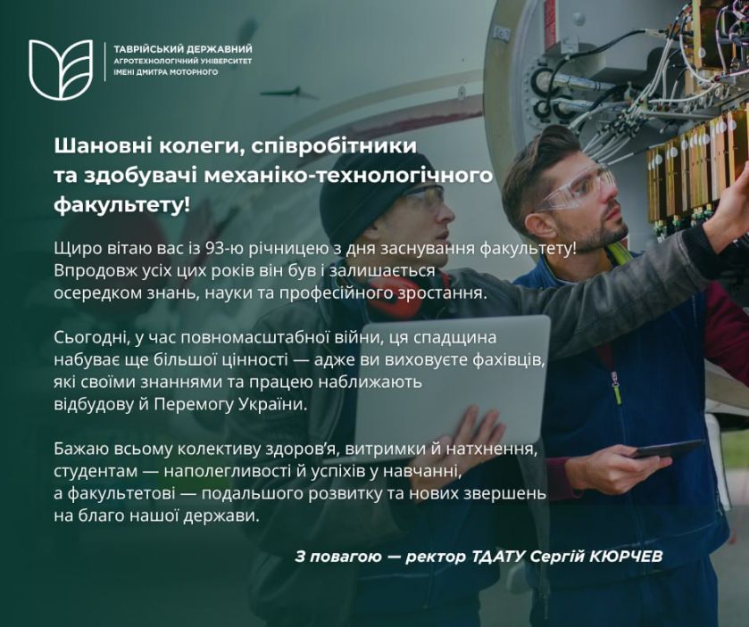 Механіко-технологічному факультету ТДАТУ — 93 роки!