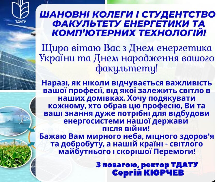Вітання ректора з Днем енергетика та Днем народження факультету ЕКТ