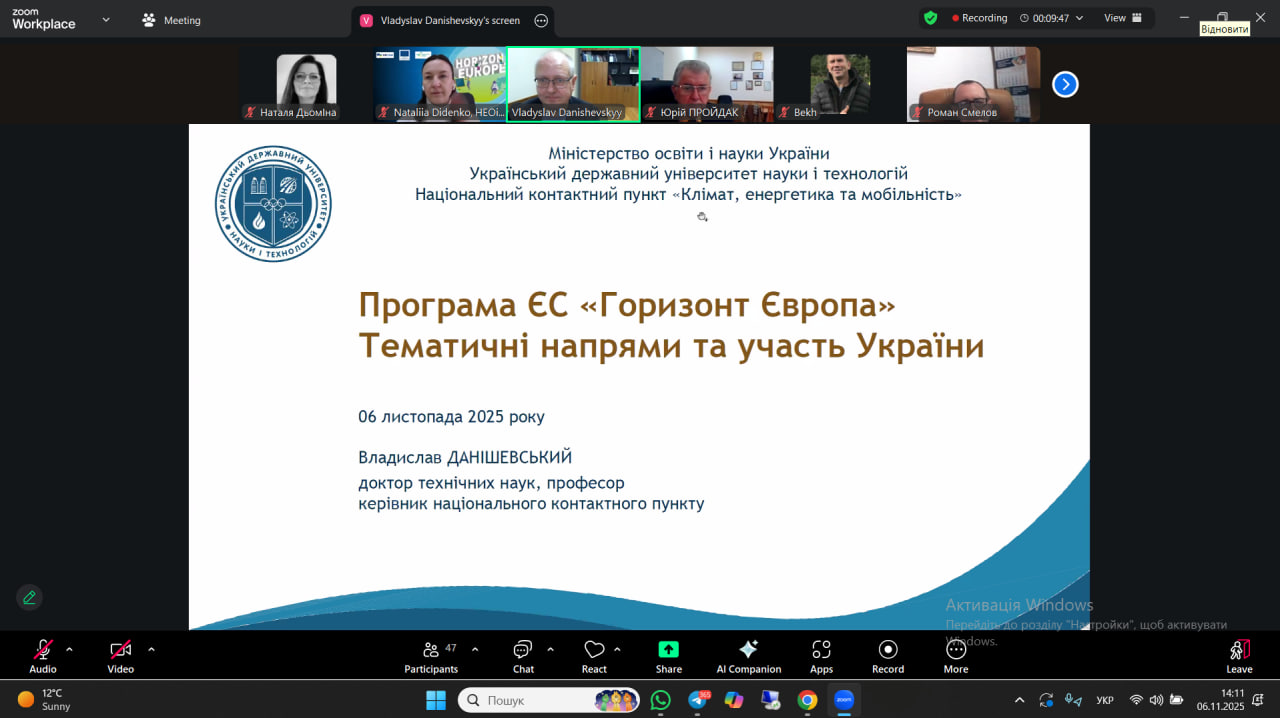 Викладачі кафедри долучилися до Інформаційного дня програми «Горизонт Європа» за напрямом «Клімат, енергетика та мобільність»