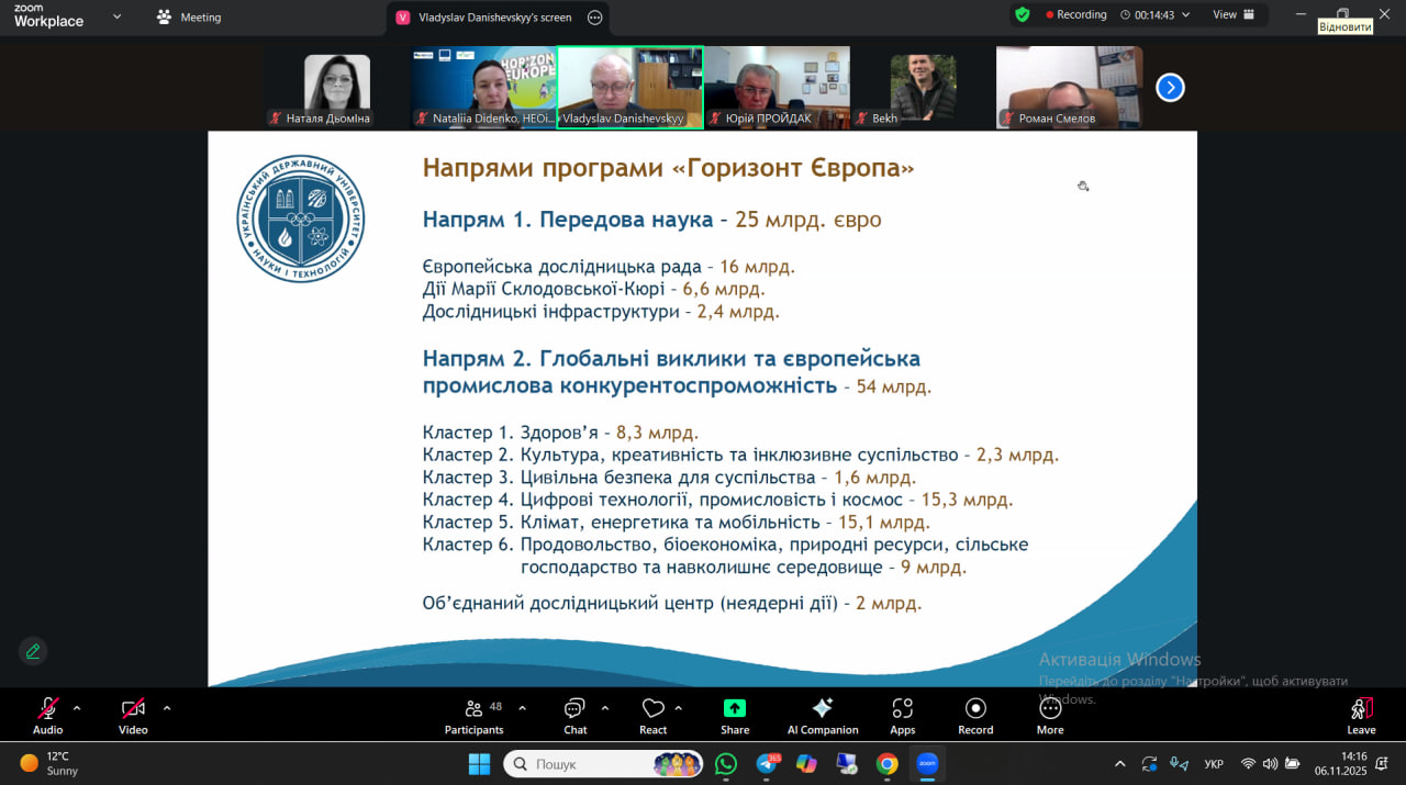 Викладачі кафедри долучилися до Інформаційного дня програми «Горизонт Європа» за напрямом «Клімат, енергетика та мобільність»