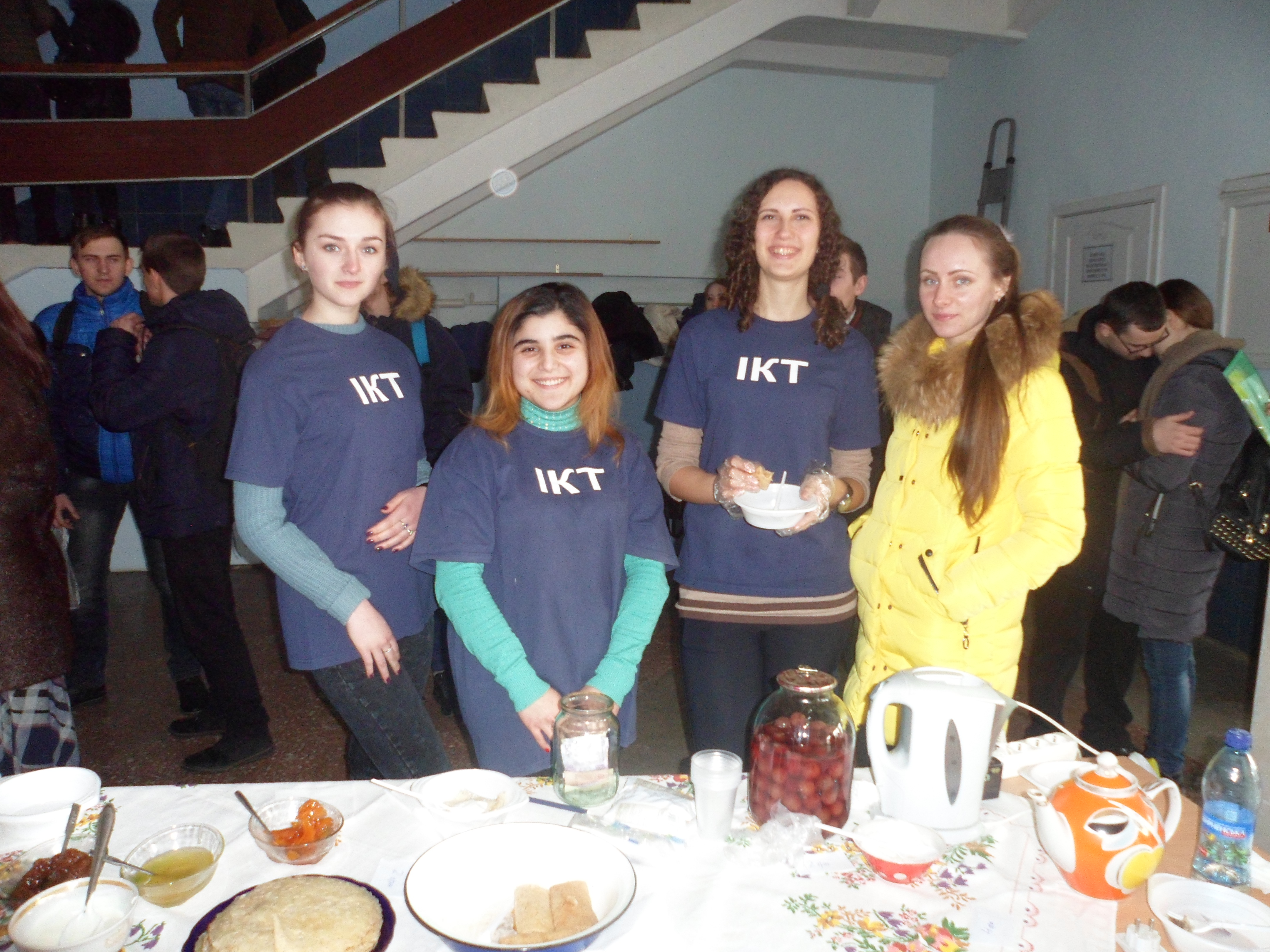 Студенти 31-КН групи факультету ІКТ взяли активну участь у підготовці та проведенні цього цікавого свята. Головним символом і основним частуванням на Масляну – є млинці. Гаркуша Д., Гешева Г., Ручка В., Торбунова А. приготували найсмачніші млинці в університеті. Вважалося, що з кожним з’їденим млинцем, в цей час, людина отримує частинку тепла і світла сонця, тому разом з куратором Рожковою О.П. студенти пригощали млинцями гостей свята та й про себе не забули…