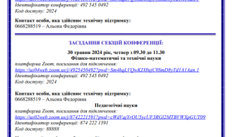 Шановні викладачі, наукові співробітники, здобувачі вищої освіти! Запрошуємо вас на пленарне засідання V Міжнародної науково-практичної конференції «РОЗВИТОК СУЧАСНОЇ НАУКИ ТА ОСВІТИ: РЕАЛІЇ, ПРОБЛЕМИ ЯКОСТІ, ІННОВАЦІЇ», яке відбудеться 29 травня 2024 року о 13:00 год. Запрошення-посилання