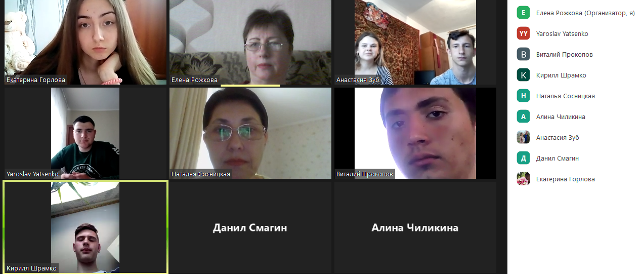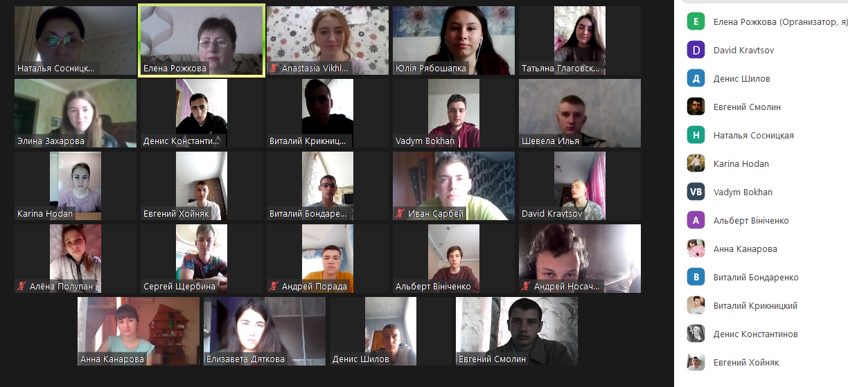 У зустрічі взяла участь завідувач кафедри, доктор педагогічних наук, професор Наталя Сосницька. Вона привітала студентів із складанням перших екзаменів у незвичному режимі та побажала успіхів у роботі.
