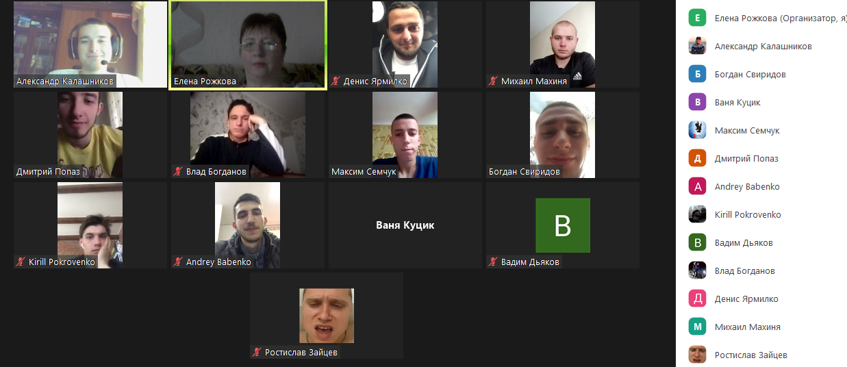 Оленою Рожковою в режимі он-лайн зв’язку була надана інформація, про порядок проведення екзамену, як потрібно до нього підготуватися, як буде відбуватися оцінювання студентів, про необхідність виконання самостійного завдання та вчасного його звітування, а також про відпрацювання боргів.