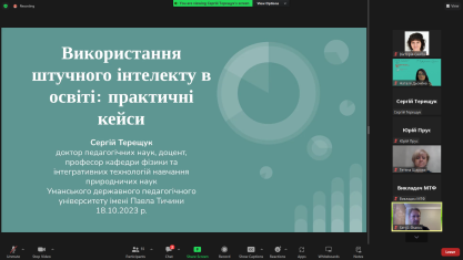 18 жовтня 2023 року викладачі кафедри взяли участь у заході в межах роботи вищої школи педагогічної майстерності за напрямом «Гостьовий професор» на тему «Використання штучного інтелекту в освіті: практичні кейси».