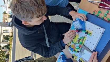 Кафедра вищої математики і фізики прийняла активну участь у цьому заході. Локація, яку підготували викладачі, не залишила байдужими нікого, хто проходив повз неї. Школярі мали можливість не тільки пройти майстер-клас Наталі Сосницької і Альони Дяденчук зі складання електричних схем але й взяти участь у цікавій вікторині з математики і фізики, яку підготували Наталя Дьоміна і Лариса Халанчук. Навіть ті, хто був не впевненими у своїх можливостях складати схеми, спробували це зробити і залишитися задоволеними, що в них все вийшло дуже добре. І що вивчати фізику, насправді, дуже цікаво і весело. А переможці отримали смачні призи і яскраві календарики з логотипом кафедри. З іншими локаціями різних факультетів присутніх випускників знайомила Олена Рожкова. Під час екскурсії учні мали можливість спілкуватися зі студентами 21 сКН (куратор Ольга Іщенко) 11 МБКН (куратор Лариса Халанчук), які активно допомагали у проведенні цікавої подорожі знайомства з університетом.