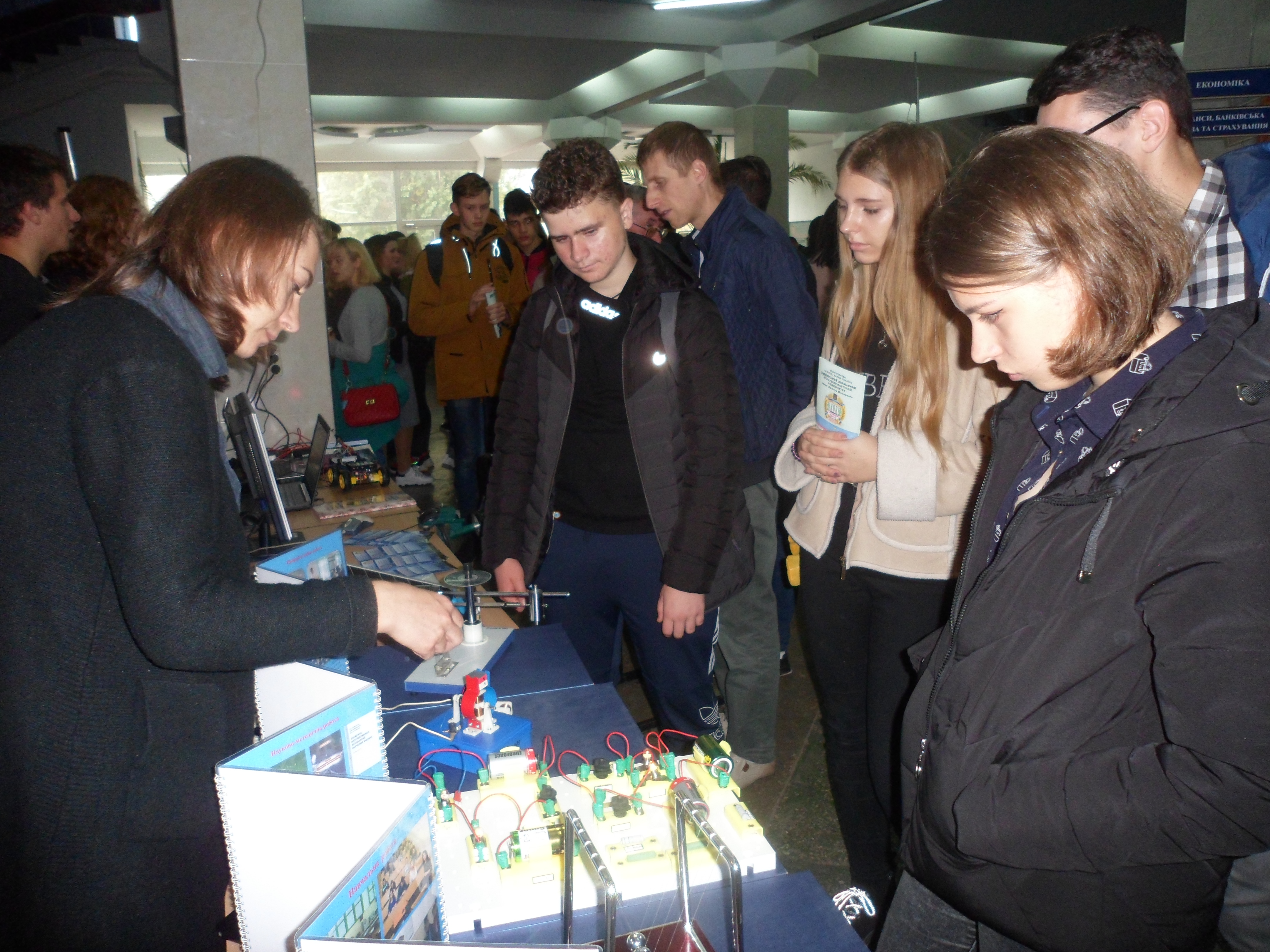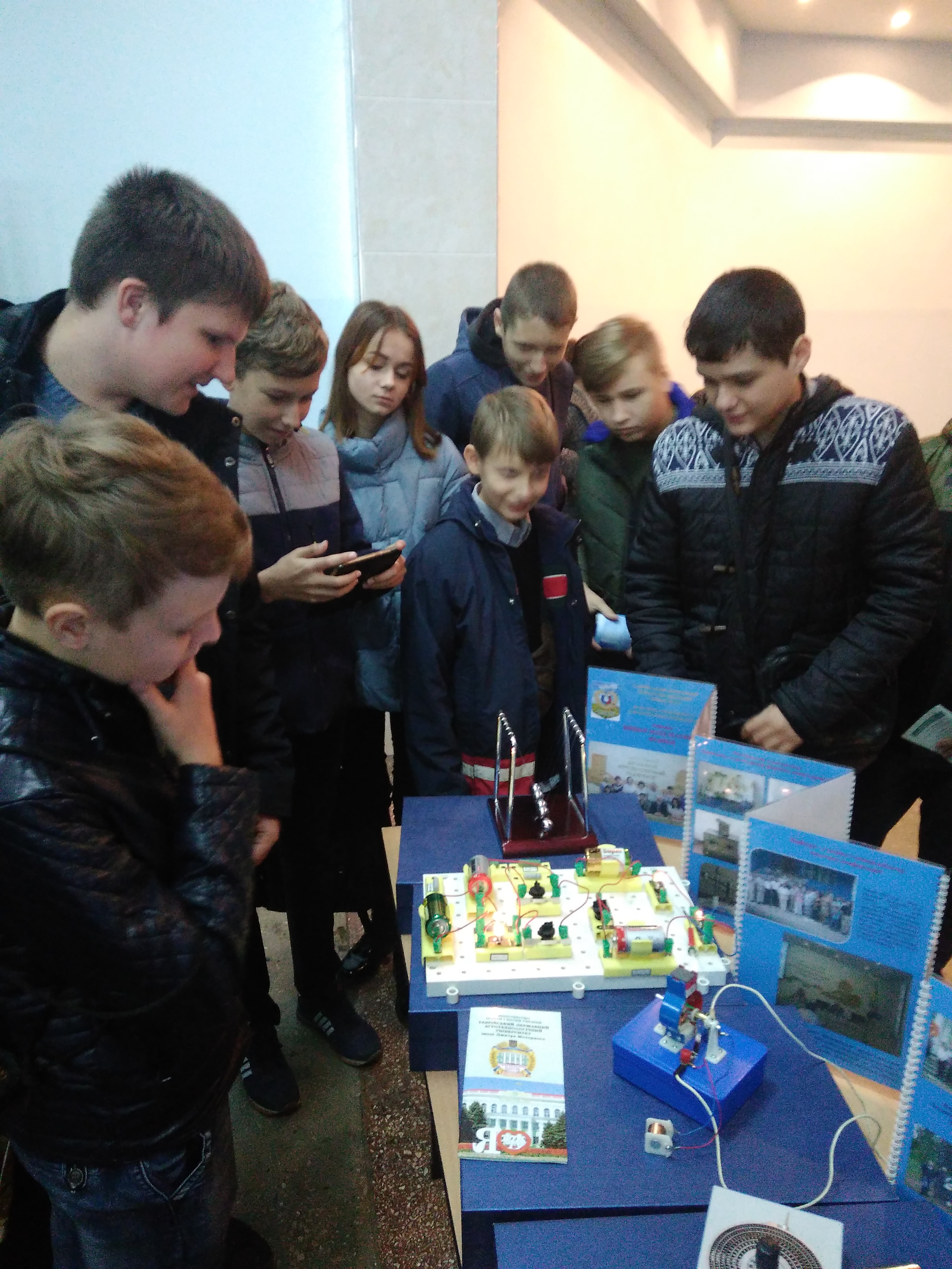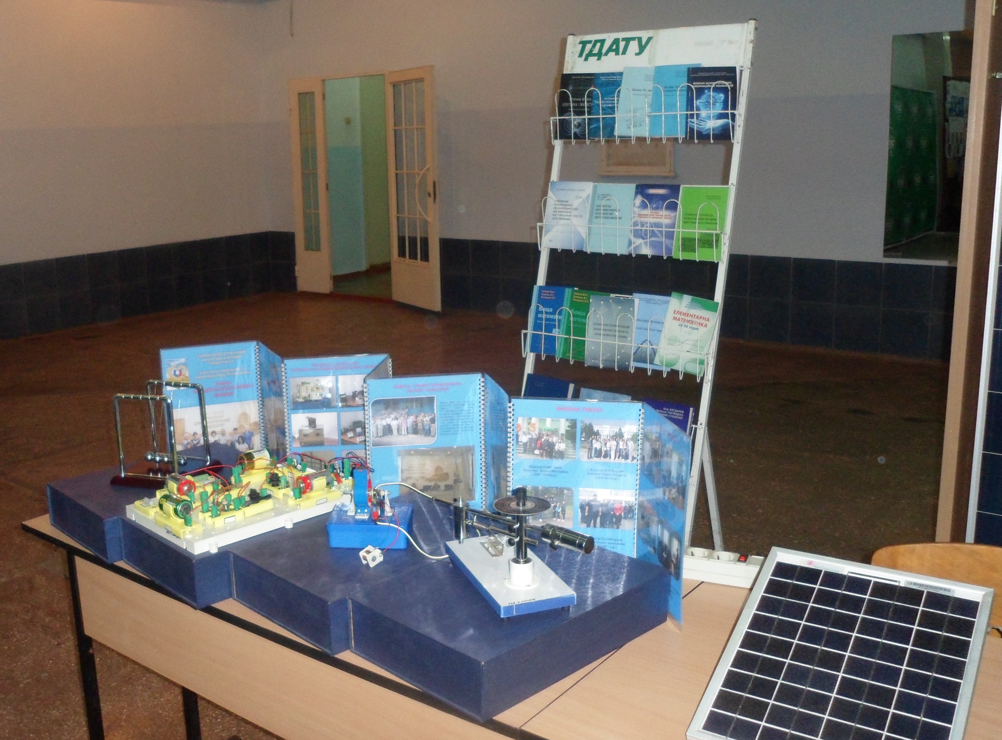 Серед представлених стендів різних кафедр наочні прилади нашої кафедри не залишили байдужими нікого з присутніх. Випускники шкіл та, навіть, вчителі і викладачі мали можливість спробувати скласти електричні схеми, побачити роботу електричного двигуна, покрутити прилад з динаміки обертального руху, побачити демонстрацію закону збереження імпульсу. Роботу цих приладів коментували та роз’яснювали завідуюча кафедри д.п.н., професор Наталя Сосницька та к.т.н., старший викладач кафедри Альона Дяденчук.