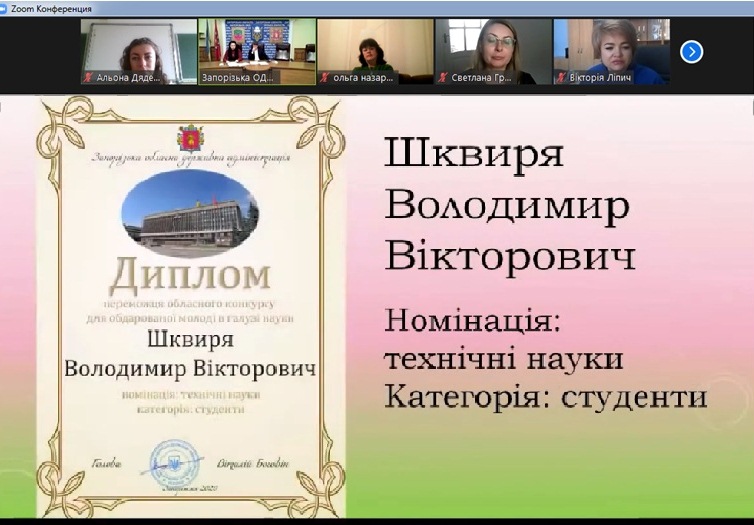 16 листопада 2020 року відбулося підбиття підсумків щорічного обласного конкурсу для обдарованої молоді в галузі науки. У зв’язку із запровадженням карантинних обмежень зустріч і підведення підсумків відбулося в онлайн-форматі за допомогою Zoom конференції.