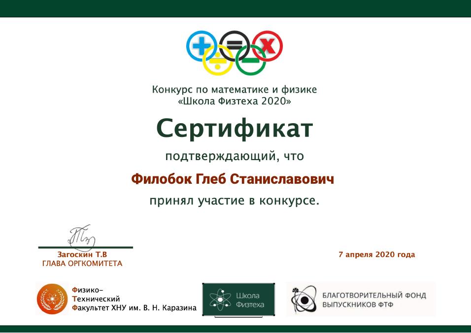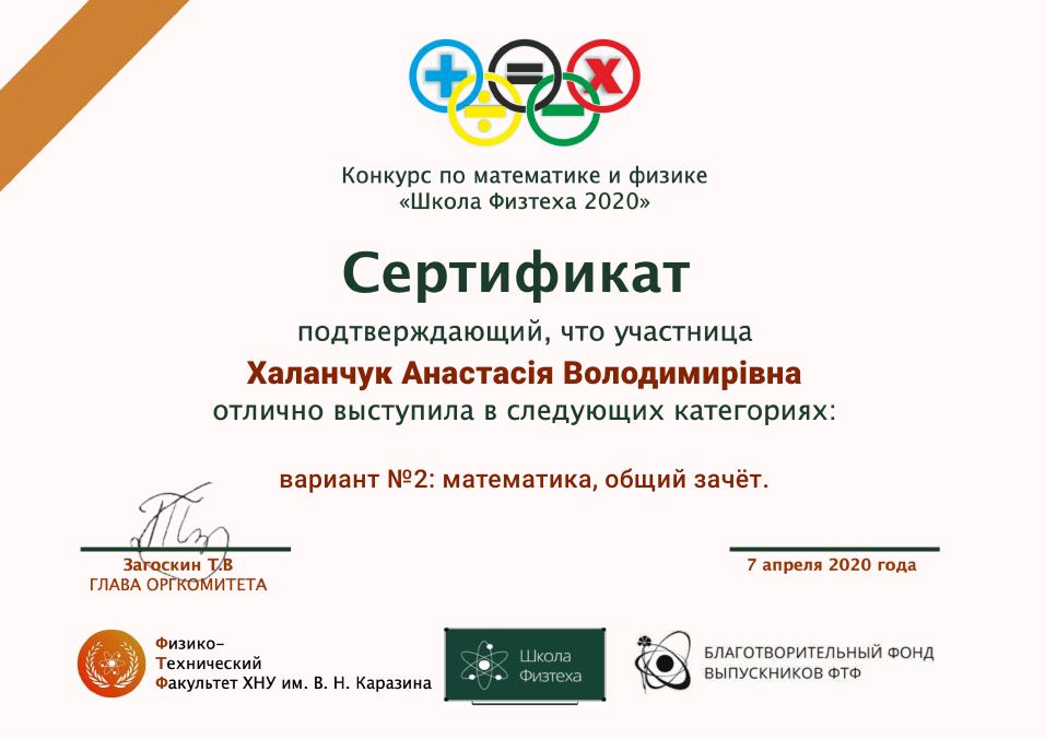 21-22 березня 2020 року вихованці гуртка «Математика» Комунального закладу «Центр позашкільної освіти» Мелітопольської міської ради Запорізької області Анастасія Халанчук і Гліб Філобок гідно прийняли участь в онлайн конкурсі «Школа Фізтеха» разом зі своїм керівником Ларисою Халанчук, асистентом кафедри вищої математики і фізики.