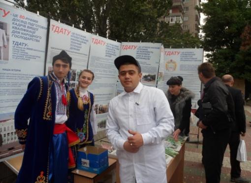 Наш навчальний заклад був представлений яркими рекламними палатками різних факультетів. Активну підтримку представництва ТДАТУ здійснювали учасники студентського флешмобу.